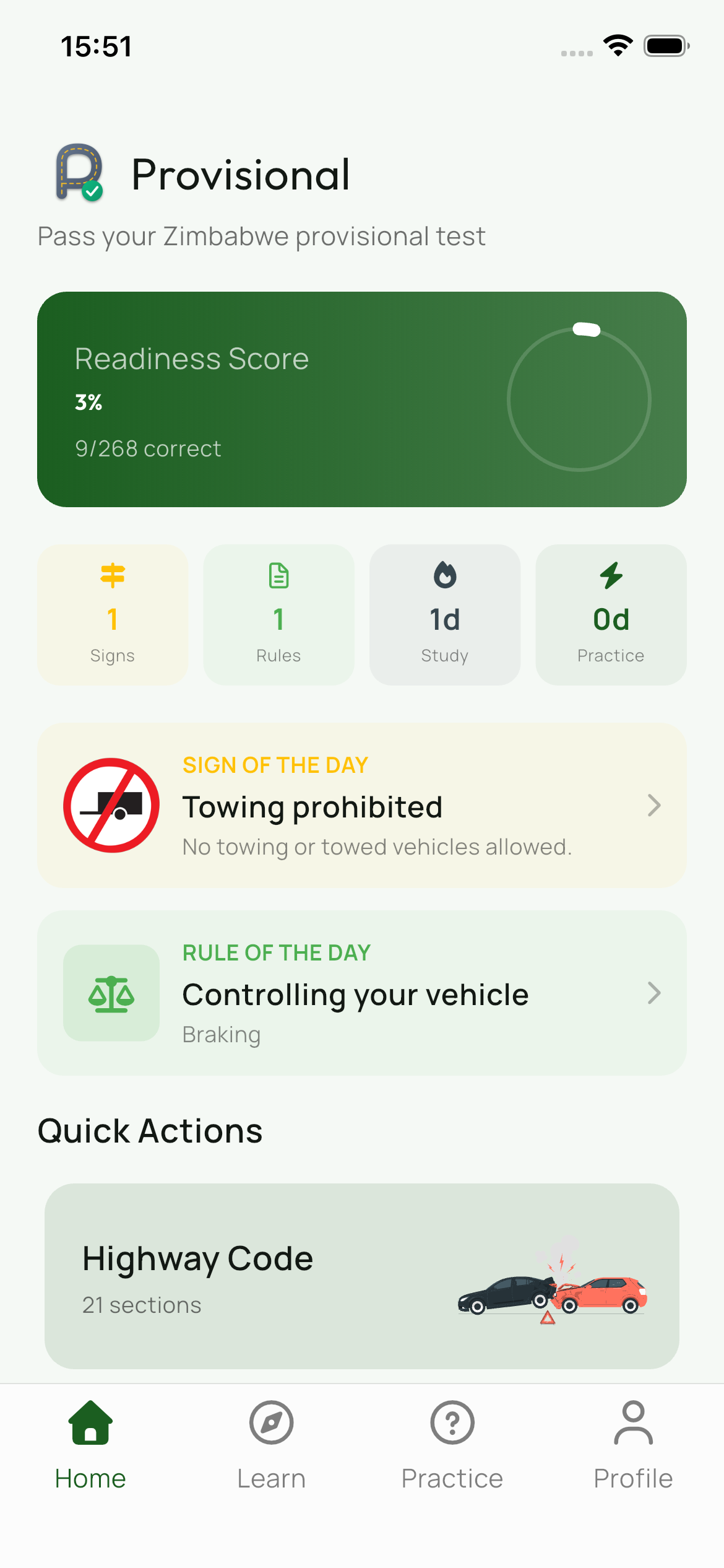 Study the theory online, then download the app to practice with real exam questions and track your progress.